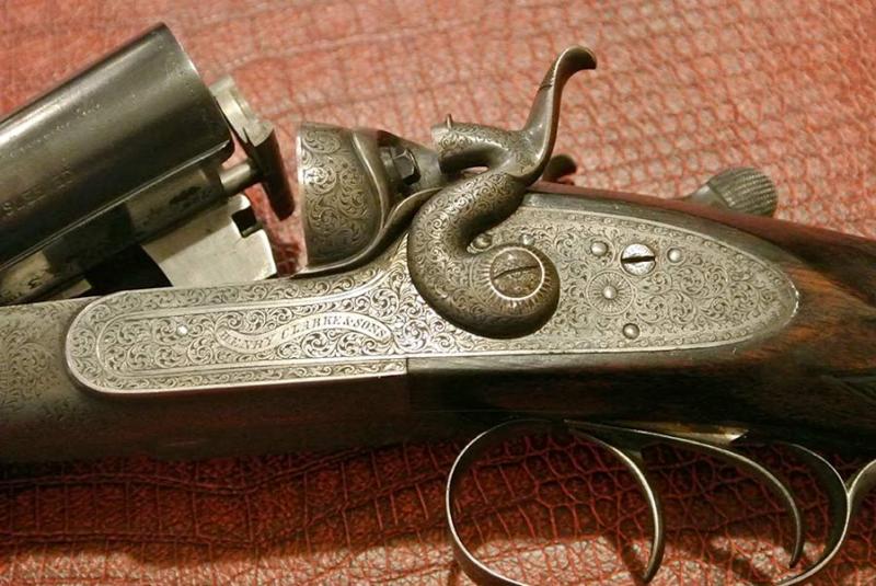 A 12-bore toplever hammergun, 28" sleeved nitro steel to damascus barrels, the rib engraved 'HENRY CLARKE & SONS. MIDLAND GUN WORKS, LEICESTER,' and inscribed '2' at the breech end. 2 1/2" chambers, bored approximately 1/4 and 1/2 choke. Carved percussion fences, rebounding locks, fully engraved with fine scrollwork. 14 1/2" well-figured stock, escutcheon engraved with a griffin surmounted by a crown. Steel heel and toe plates.