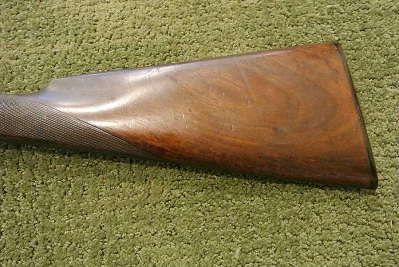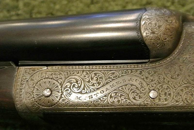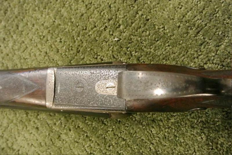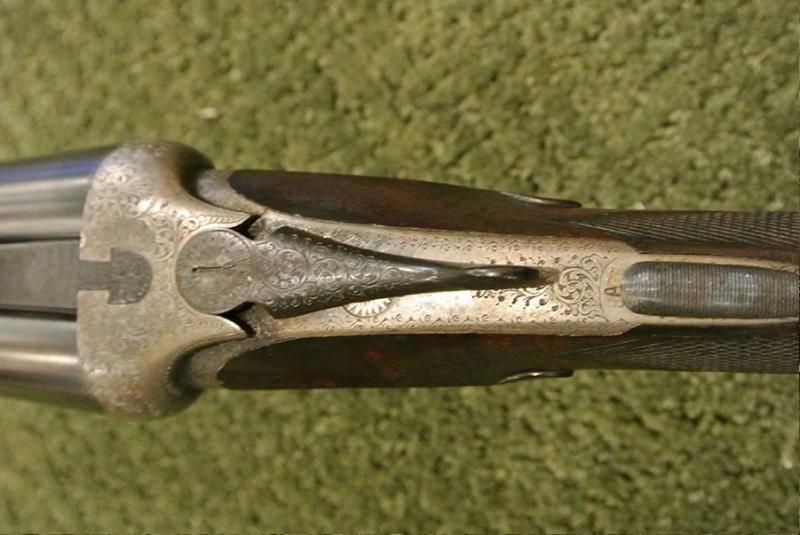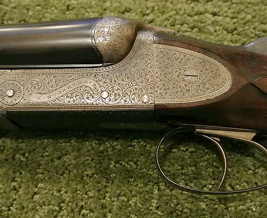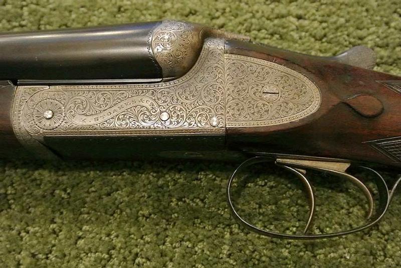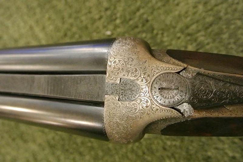 A beautifully made side-plated Anson & Deeley action pigeon gun with screw grip, excellent barrels and perfect shooting characteristics for pigeon or sporting clays competition. The action and locks retain almost all the original color. We have re-blacked the barrels but have not touched the finish or the wood work, which remains original. Beautiful engraving.